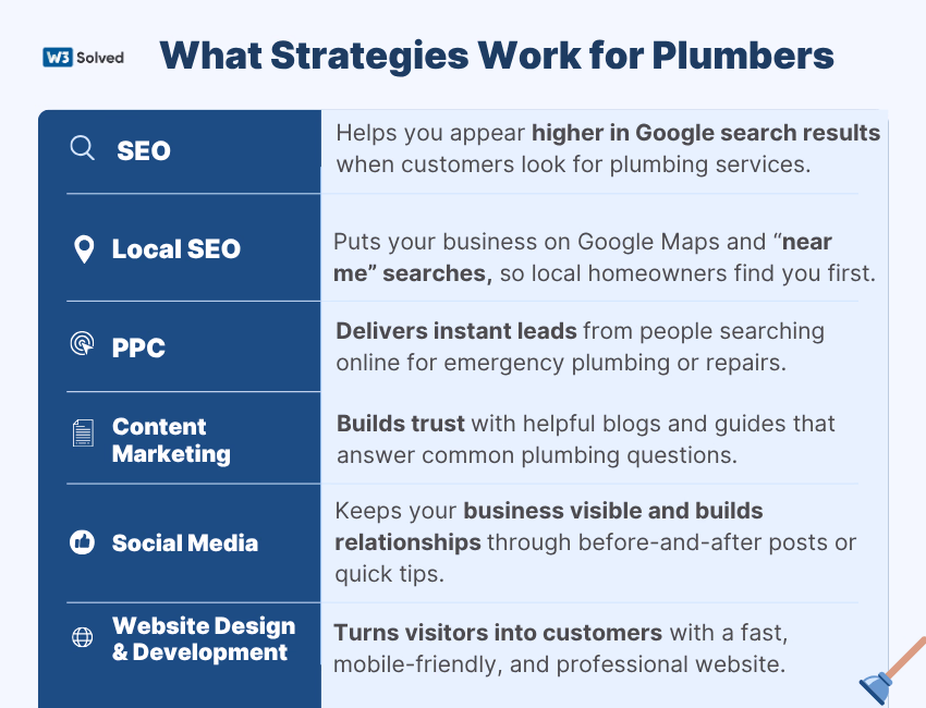 With the right mix and steady effort, digital marketing can turn your plumbing business into a reliable lead-generating machine that stays busy even during slower months.